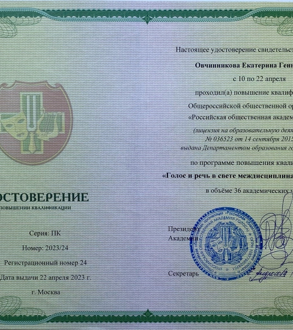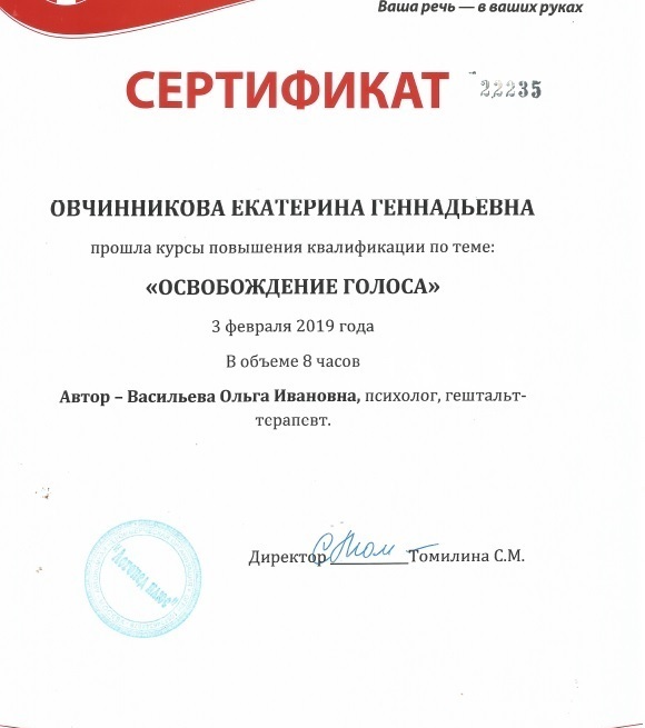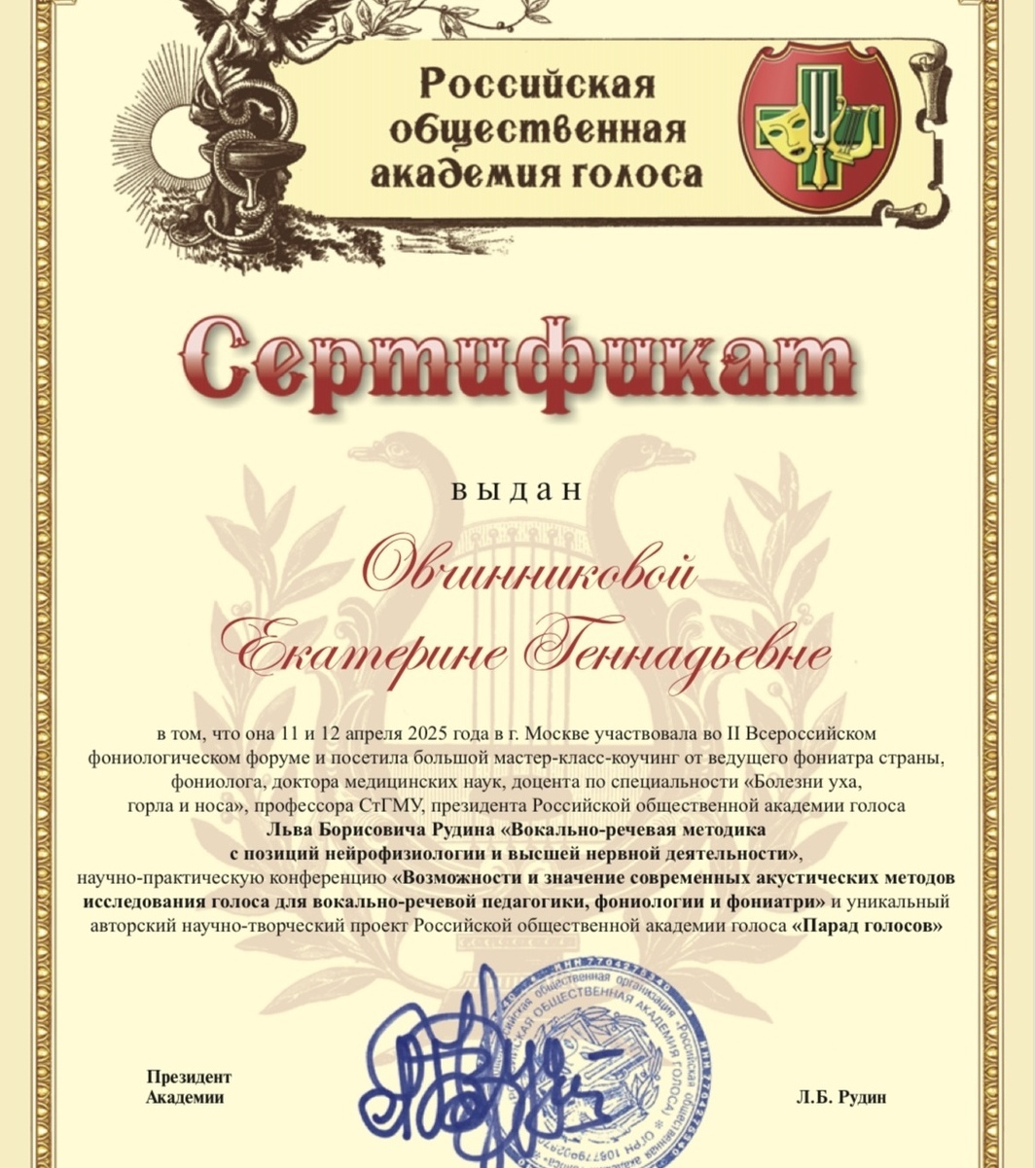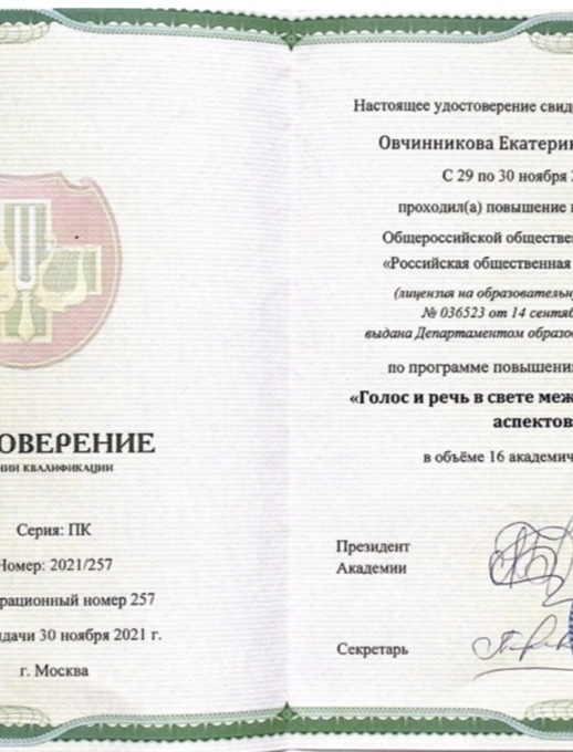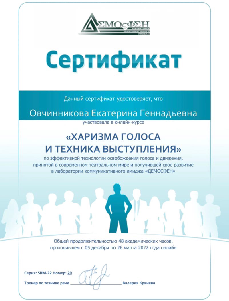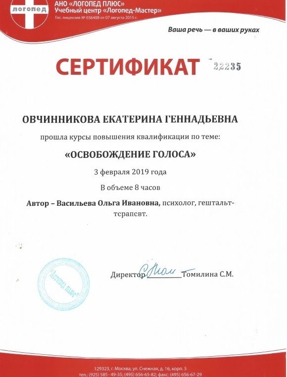 ПРЕПОДАВАТЕЛЬ: опытный логопед, речевой и вокальный фонопед, специалист по миофункциональной коррекции, практический психолог, речевой и вокальный тренер, сертифицированный специалист Федерального реестра специалистов по голосу и речи Овчинникова Екатерина Геннадьевна